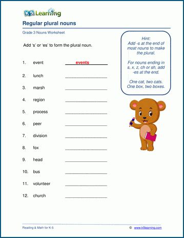 Here are 5 pages of free printable plural nouns worksheets for kids. These plural noun worksheets and activities are perfect for 2nd and 3rd grade students. Forming regular plural nouns grade/level: